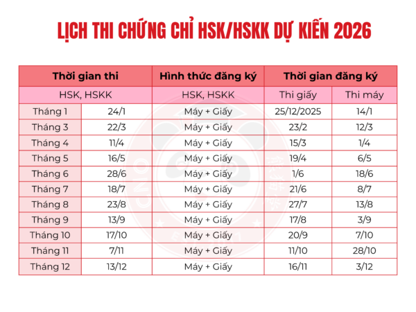 Trên đây là thông tin cập nhật lịch thi HSK – HSKK năm 2026. Lưu ngay lại và theo dõi thông tin từ điểm thi để từng bỏ lỡ những thông báo quan trọng có liên quan bạn nhé.