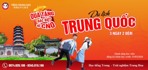 - Mỗi học viên đăng ký khóa học tiếng Trung từ Sơ cấp đến HSK4: Tặng chuyến du lịch Trung Quốc 03 ngày 02 đêm.