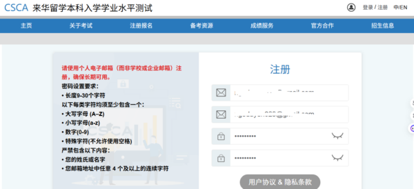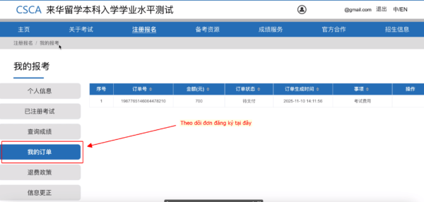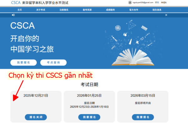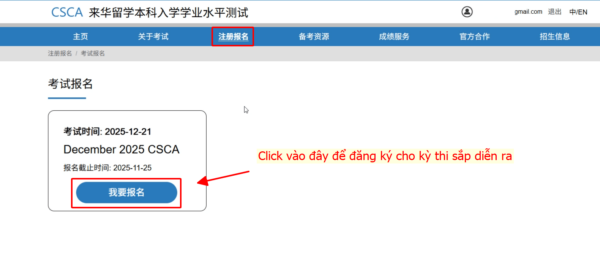 Trường hợp các bạn chưa có tài khoản, cần tiến hành đăng ký tài khoản tại: https://csca.cn/register