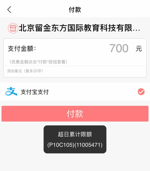 Lỗi vượt hạn mức tích lũy từ tài khoản nhận dẫn đến việc ứng viên không thể tiếp tục thực hiện thanh toán. Đối với trường hợp này, các bạn nên đổi phương thức thanh toán để thực hiện tại.