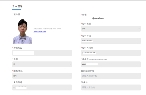 - 目前就读学校:Trường đang học (Không bắt buộc)