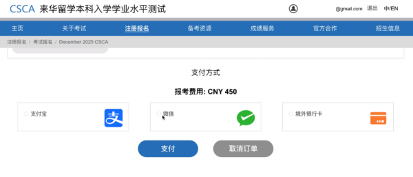 Kỳ thi CSCA đợt 21/12/2025 dành cho sinh viên các quốc gia Khu vực Châu Á – Thái Bình Dương đã chính thức mở đăng ký lúc 14:00 ngày 10/11/2025 theo giờ Trung Quốc.