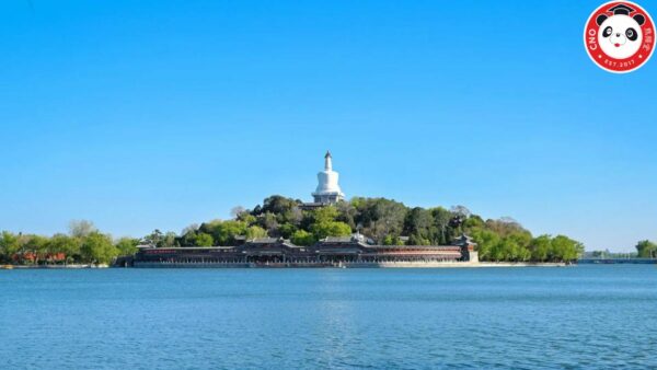 Cảnh quan: Hồ Bắc Hải rộng mênh mông, Tháp Bạch Đài trên đảo nhỏ giữa hồ.