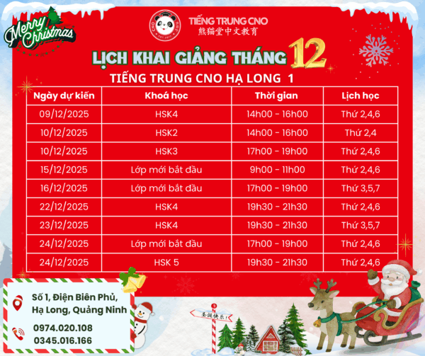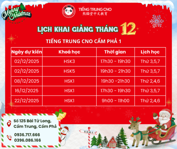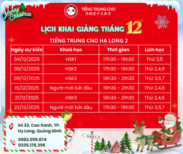 Tháng 12, Trung tâm Tiếng Trung CNO chính thức khai giảng các lớp học từ sơ cấp đến nâng cao tại tất cả các cơ sở.
